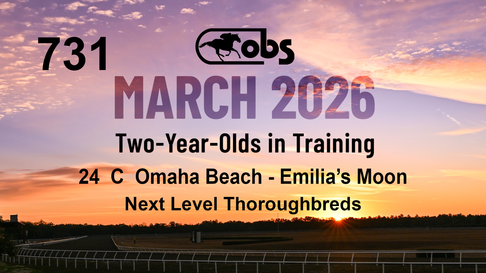 | 731 | Slate | Lower-Third | 2/20/2024 | C | Omaha Beach | Emilia's Moon | Next Level Thoroughbreds | 735 | 635 | 209 | 419 | |