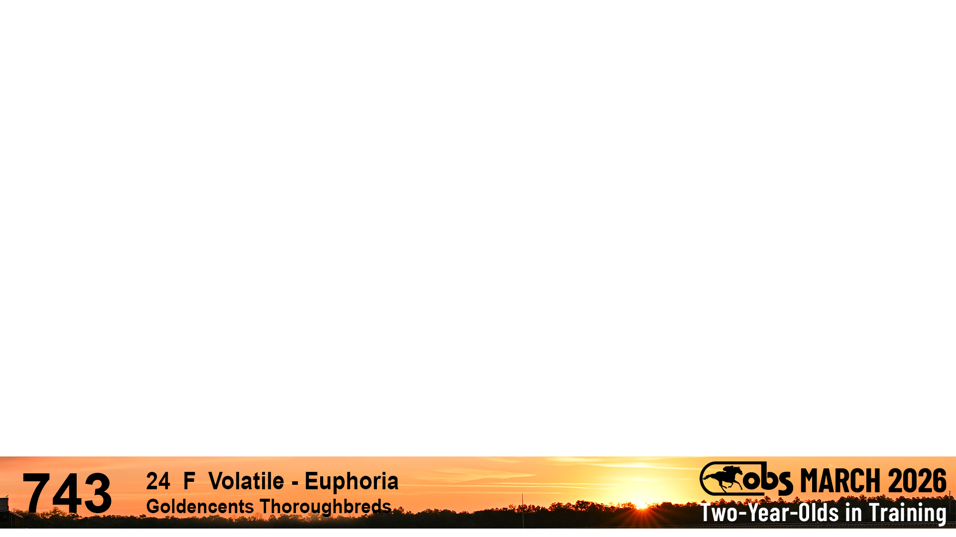 | 743 | Slate | Lower-Third | 3/17/2024 | F | Volatile | Euphoria | Goldencents Thoroughbreds, Agent | 747 | 788 | 221 | 194 | |
