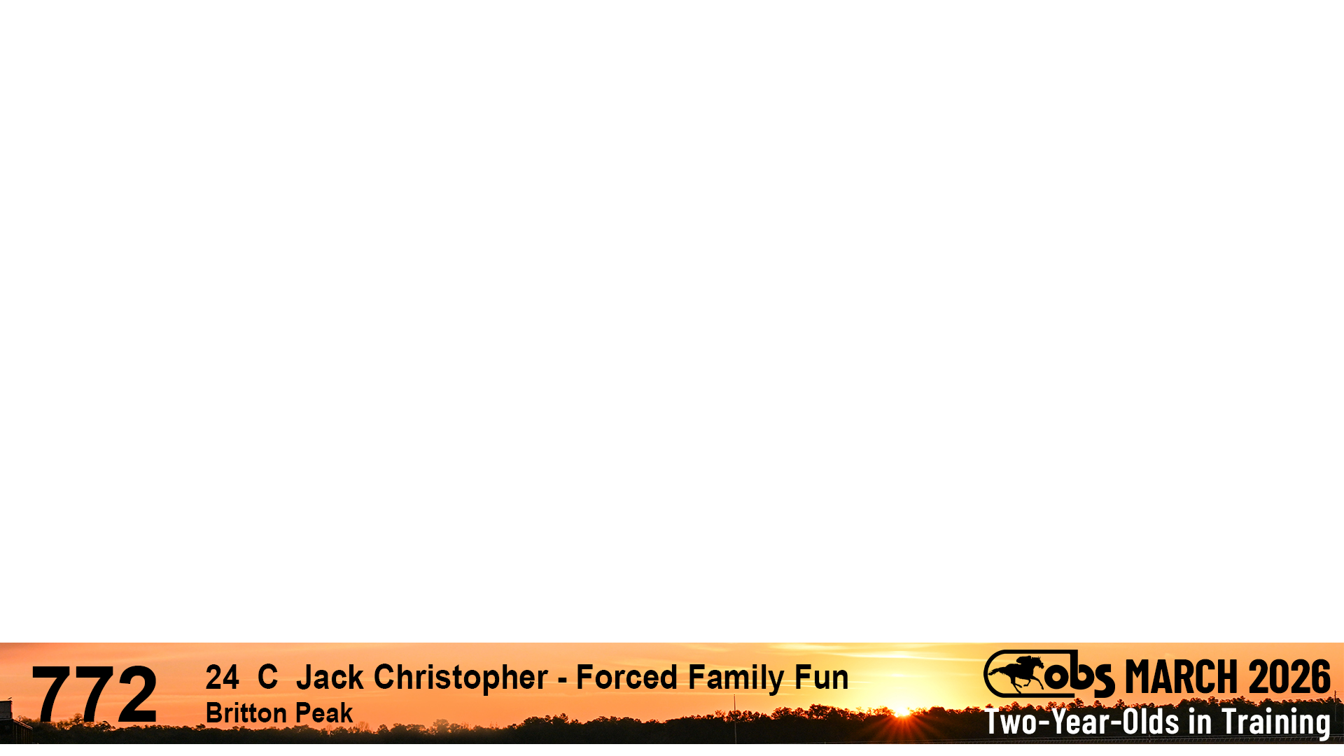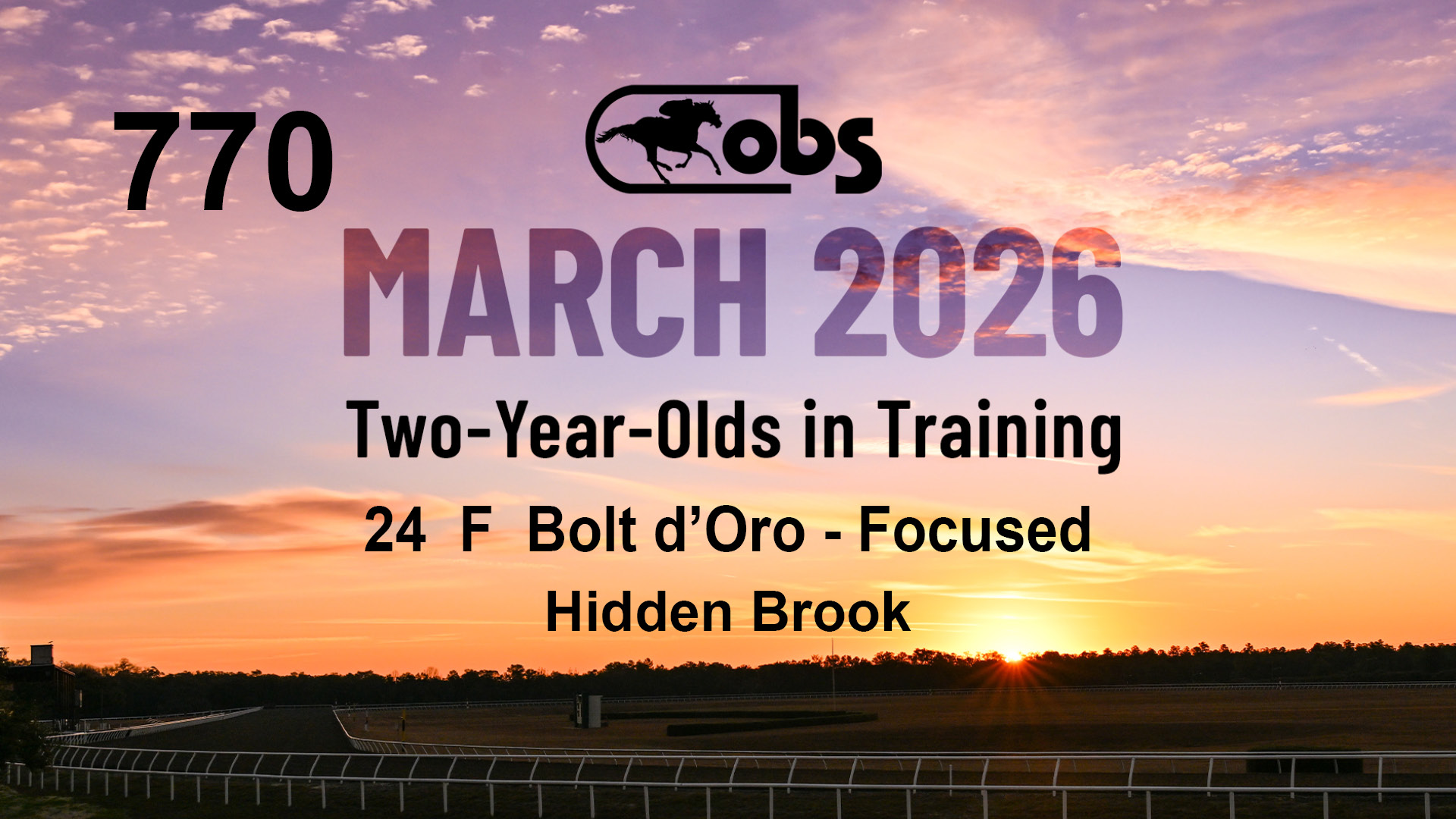 | 770 | Slate | Lower-Third | 3/14/2024 | F | Bolt d'Oro | Focused | Hidden Brook, Agent III | 772 | 60 | 248 | 255 | |