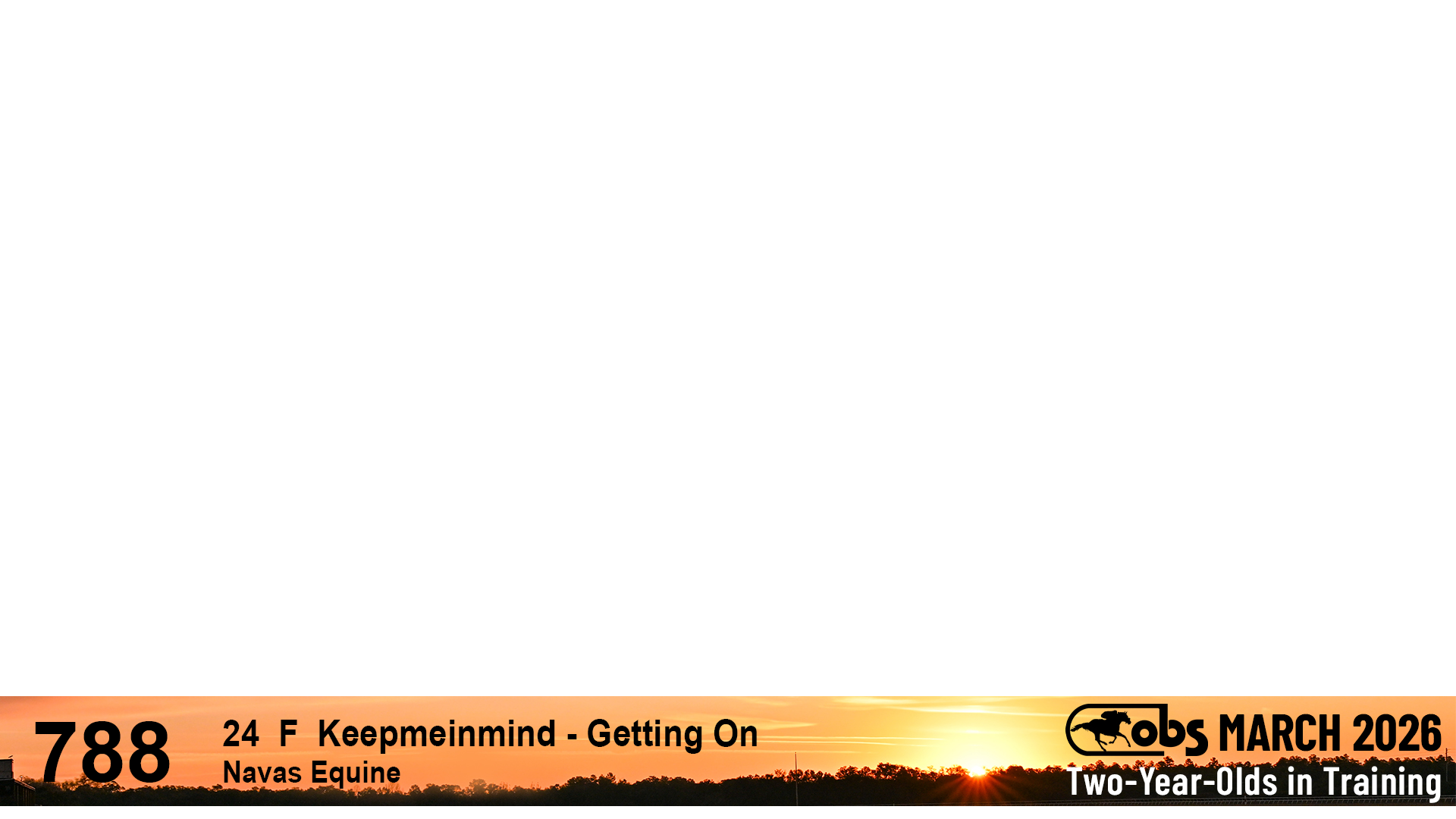 | 788 | Slate | Lower-Third | 2/25/2024 | F | Keepmeinmind | Getting On | Navas Equine | 790 | 424 | 266 | 407 | |