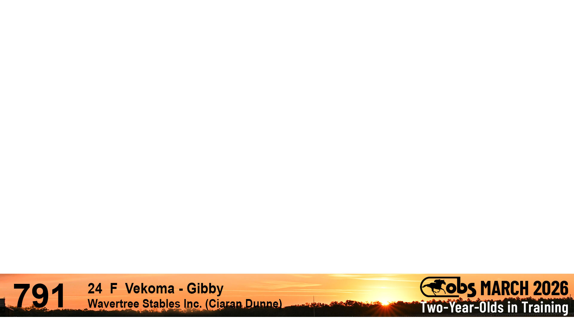 | 791 | Slate | Lower-Third | 4/13/2024 | F | Vekoma | Gibby | Wavertree Stables, Inc. (Ciaran Dunne), Agent V | 793 | 771 | 269 | 792 | |