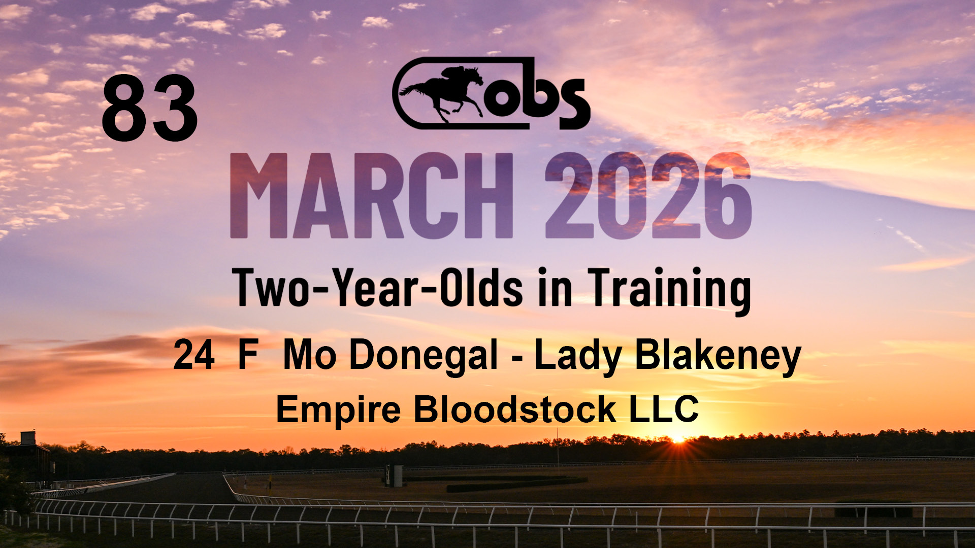 | 83 | Slate | Lower-Third | 2/12/2024 | F | Mo Donegal | Lady Blakeney | Empire Bloodstock LLC | 125 | 521 | 377 | 153 | |