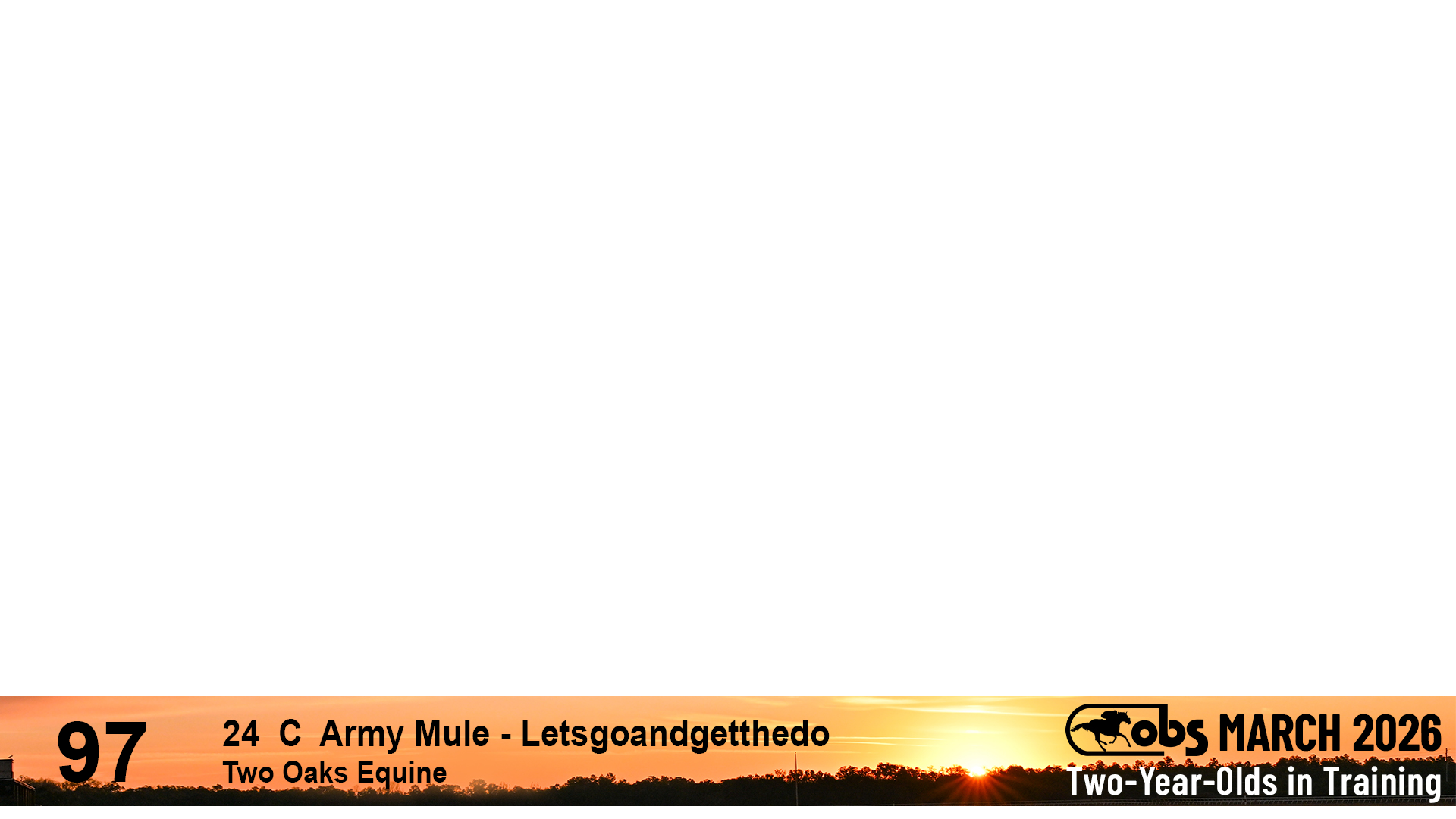 | 33 | Slate | Lower-Third | 1/26/2024 | C | Army Mule | Hype House | Kings Equine, Agent IV | 78 | 13 | 327 | 331 | |